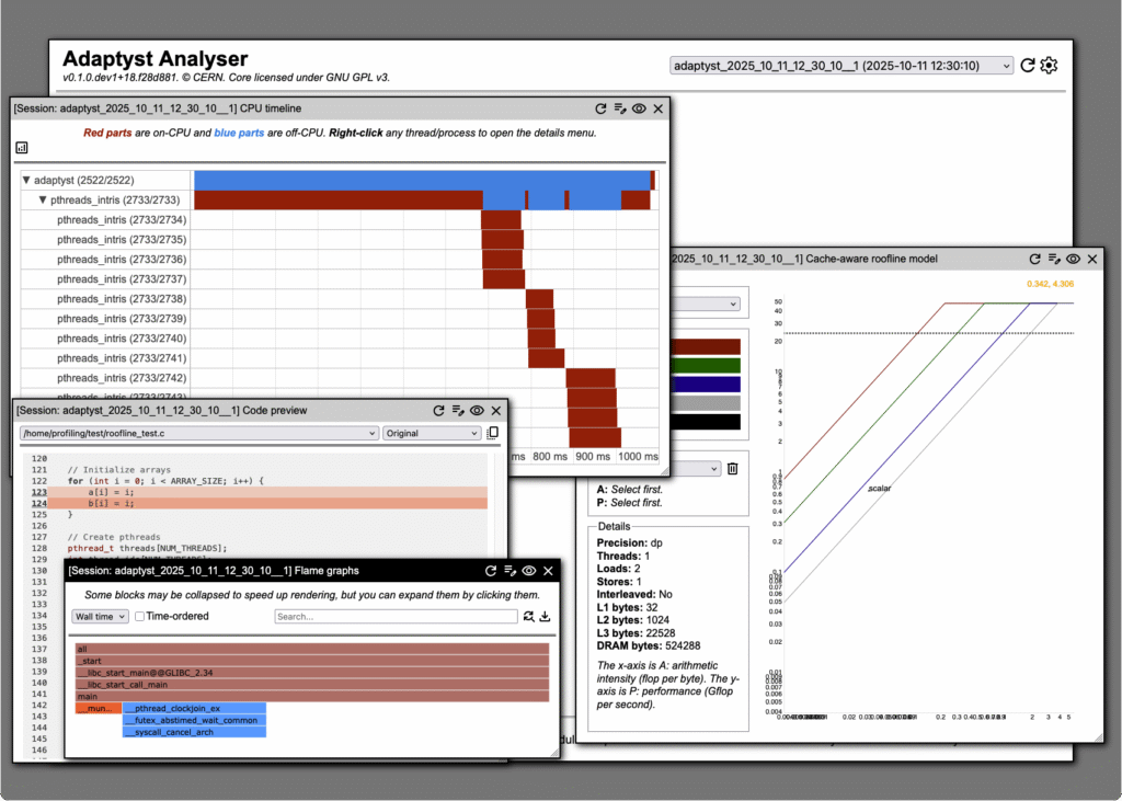 After several months of work and a licensing consultation with the CERN Open Source Program Office, we released the modular redesign of Adaptyst yesterday along with the first module “linuxperf”: Adaptyst, Adaptyst Analyser, adaptyst-linuxperf (Adaptyst part), adaptyst-analyser-linuxperf (Adaptyst Analyser part). Please accept once more our apologies for the delay: we are taking measures to ensure more realistic release dates in the future.